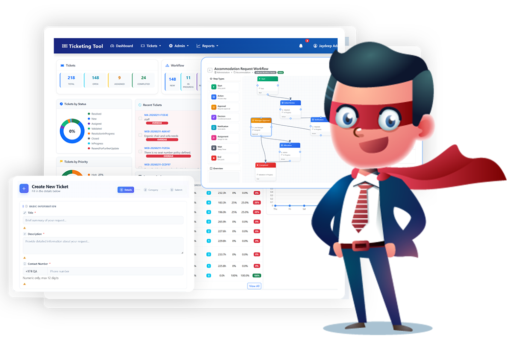 Centralizes all facility requests-IT support, transport, accommodation, maintenance-into a single, trackable system.